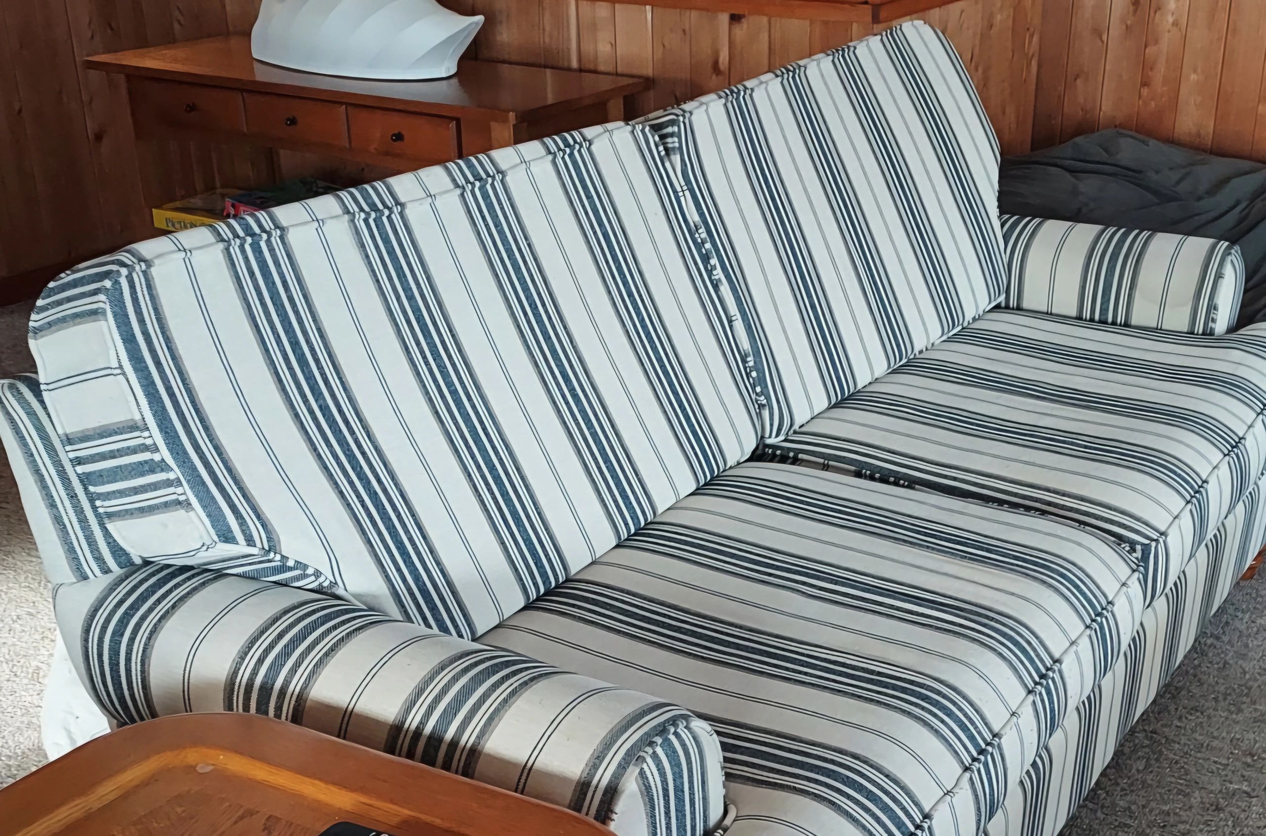 This customer's sofa was in great condition -- except for the pillow-type stuffing in the sofa back that had lost its shape. We custom cut premium pieces of extra soft 5" foam in the shape of the existing covers. This foam provides maximum comfort while holding its shape beautifully!
