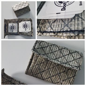 Constructed with retired sail and marine grade canvas for durability. Cover can be customized with your preferred silhouette. Four card slots and a divider where bills are tucked. Perfect companion for your crossbody bag!