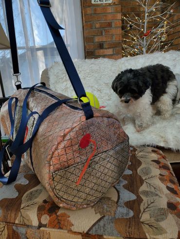 We can design a custom bag for you featuring a silhouette of something you treasure! Created using all authentic marine materials: Retired sail exterior, marine-grade canvas interior, sewn with thread used on sails. Strap is made from premium New England double braided halyard lines. Authentic sail bag you will enjoy