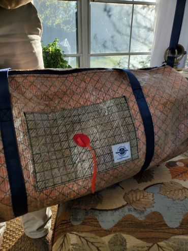 Do you have an old sail that has special meaning to you or your family? This bag was created to commemorate special times spent on their Hunter 33 when the sail was retired. Repurpose those memories instead of discarding them. Each item is custom and priced per quote. Boat.Btq@gmail.com
